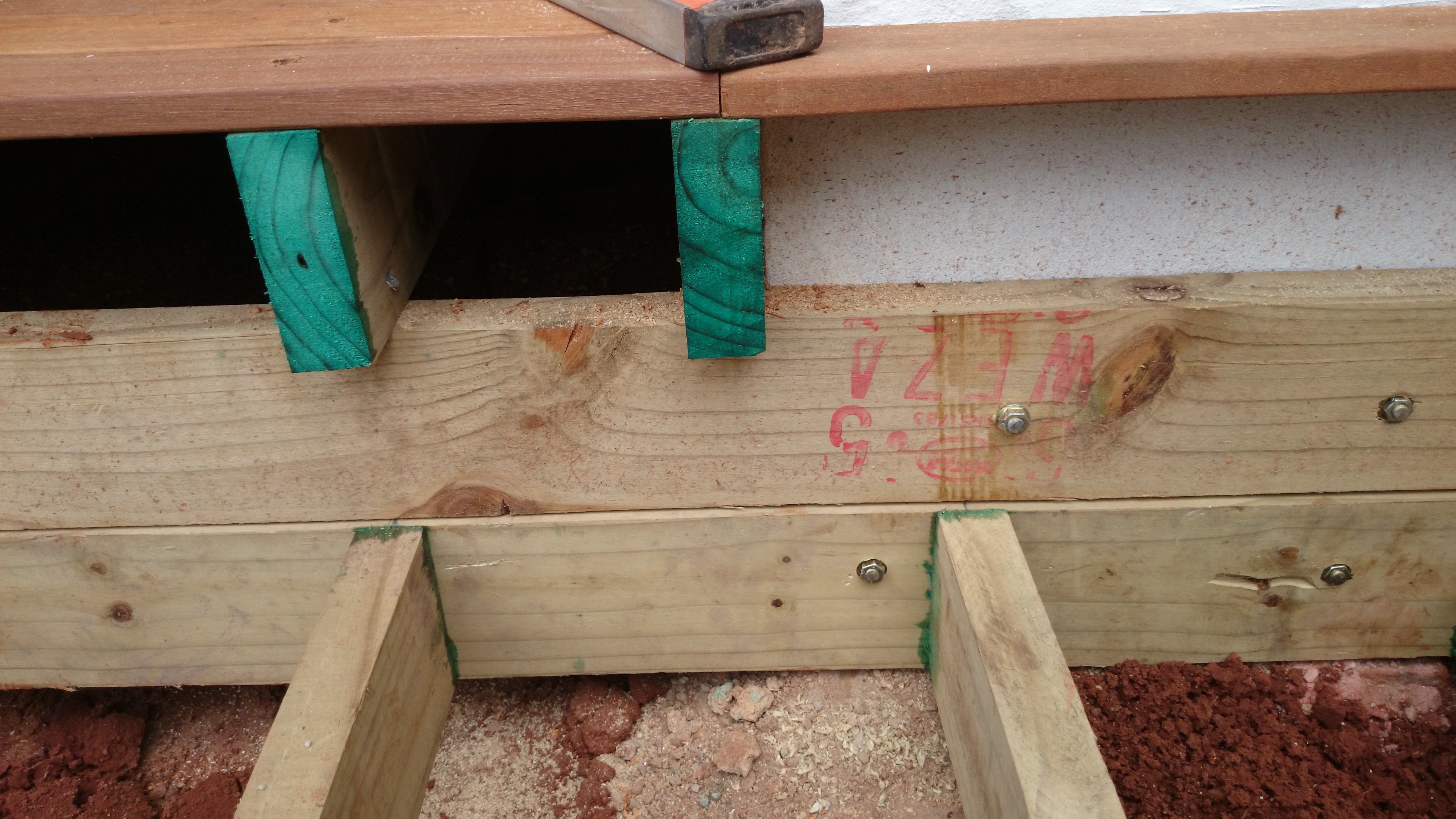 As I’ve mentioned in previous articles we use a H3 CCA treated pine substructure which the suppliers offer a 50 year guarantee on. In order to activate that guarantee we need to adhere to best practices and there are a few things that we need to do, and document by way of pics.