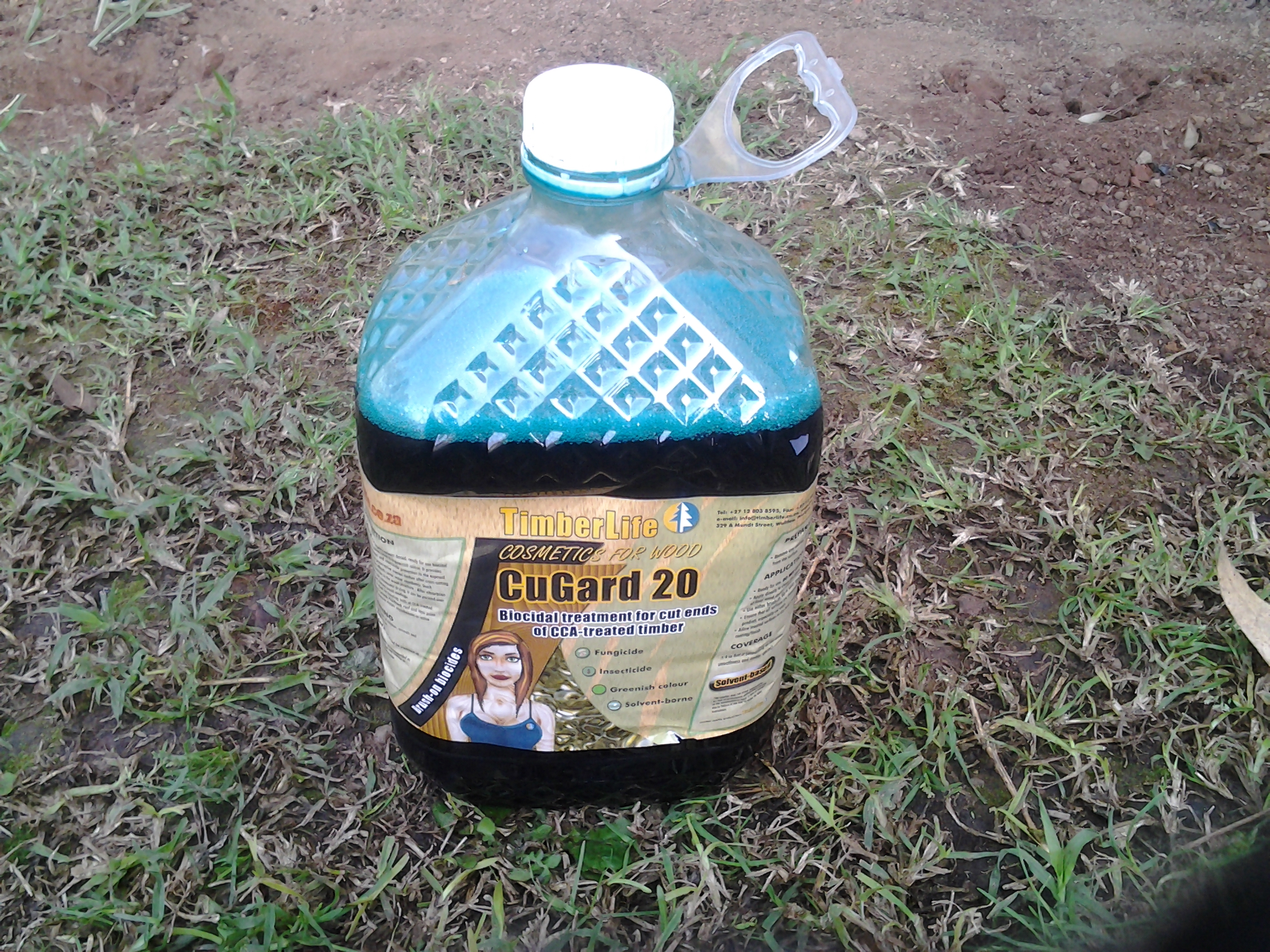 One last criterion is that where we cut a piece of timber we need to treat the end grain with an end sealer approved by the supplier. This is because the solution used in the treatment process does not penetrate all the way through the timber. Depending on the density of the wood it will penetrate about 16mm into the timber. With pine, as opposed to saligna, it will obviously penetrate further as the timber is softer. Timber such as balau cannot be successfully treated as it is too dense. However it rarely needs to be treated as it is naturally resistant to insect infestation and rot due to the resins and oils naturally found in the wood.