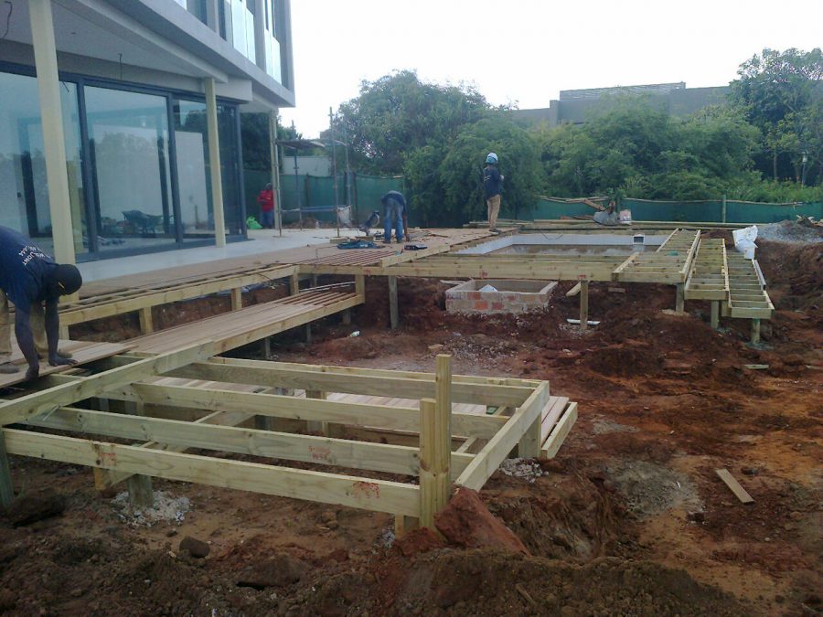 Here’s a wooden decking project we completed in Hawaan Forest Estate, Umhlanga, Durban. The whole job was quite big too, in excess of 200 square metres of coverage, so it was worth the travel from Home Base in Waterfall, Hillcrest.