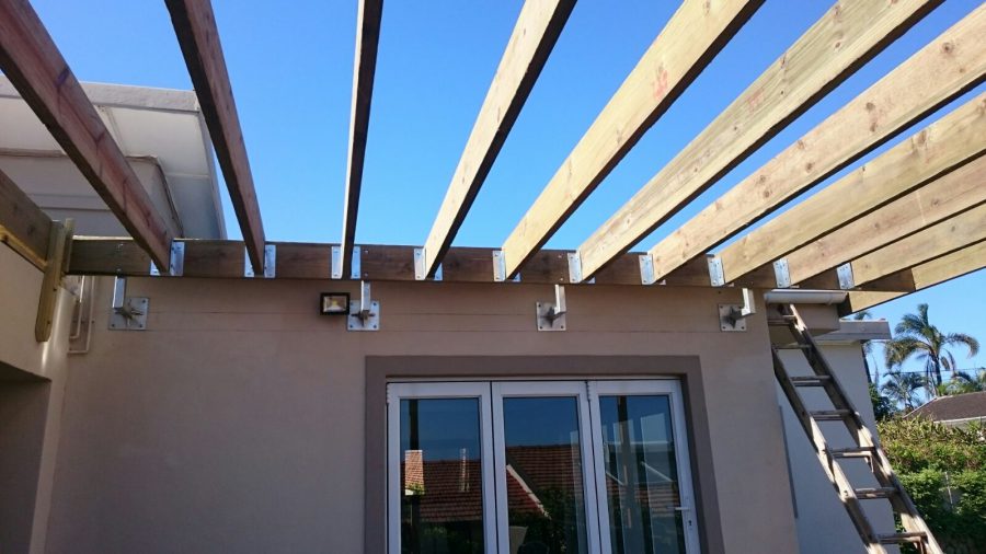 This wooden deck we built for a client in Umhlanga, Durban was a suspended wooden deck about 2.8m off the ground. The idea was to make use of the flat concrete roof as a deck because the views from up there are of Durban Anchorage