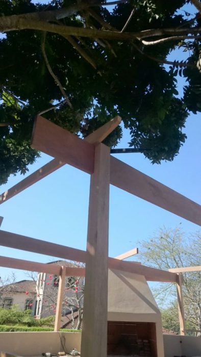 This wooden balau pergola was built at Plantations in August 2016. We had custom-made galvanised steel base plates made up in order to secure the uprights to the existing paving.