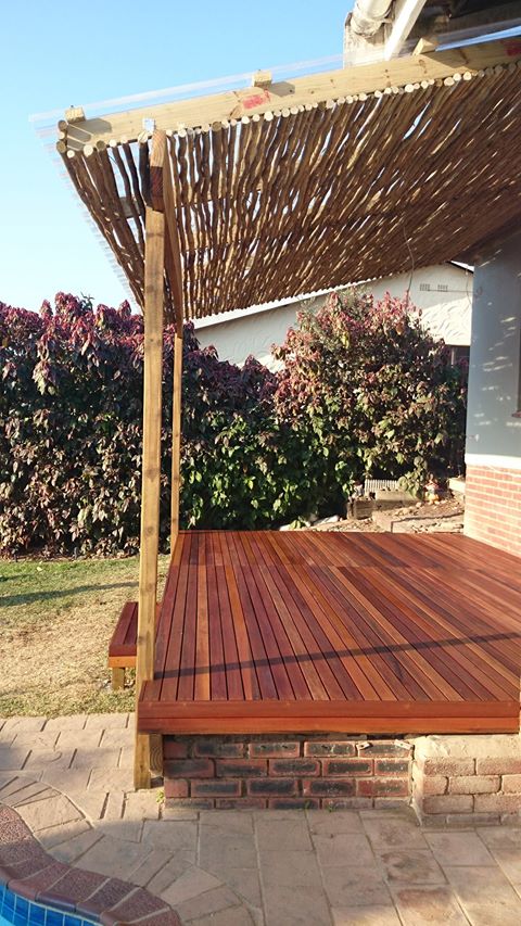 Wooden balau deck built in Malvern, DurbanWe incorporated a pergola style roof covering into this wooden balau deck we built in Malvern, Durban.