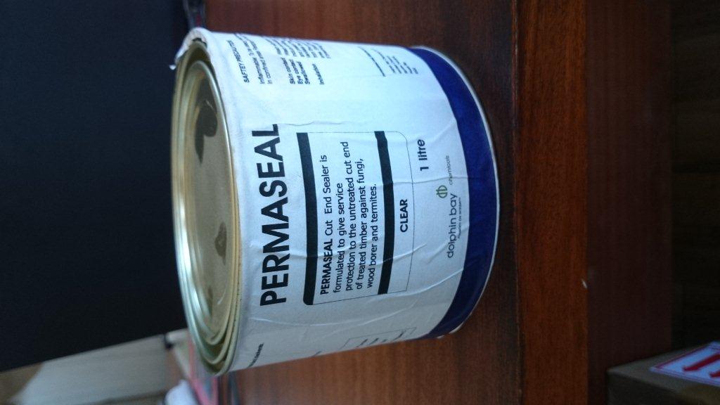 We treated our cut ends with Permaseal, an approved end sealer used to stop rot or insect damage to cut ends of CCA treated timber. This was necessary in order for us to activate the 50 year guarantee that the supplier provides on the CCA Treated pine substructure. There are a few articles on this blog that go into detail about this and what is required in order to activate your 50 year guarantee.
